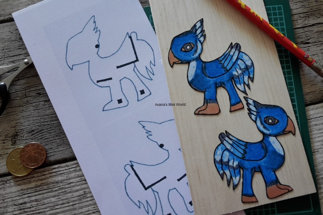 After that I cut the two hippogriffs out of the wood, which was obviously a very precise job. Though sanding the edges was even harder; I was so worried the Balsa would split or just crumble. I got the markings on the backs by cutting them out of the paper Hippogriff :)